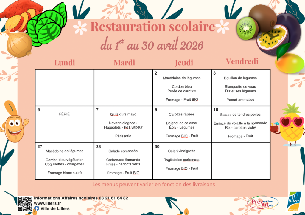 Si votre enfant fréquente le restaurant scolaire, pensez à réserver ses repas ! Des plats préparés avec soin, sur place, pour une alimentation saine et équilibrée !