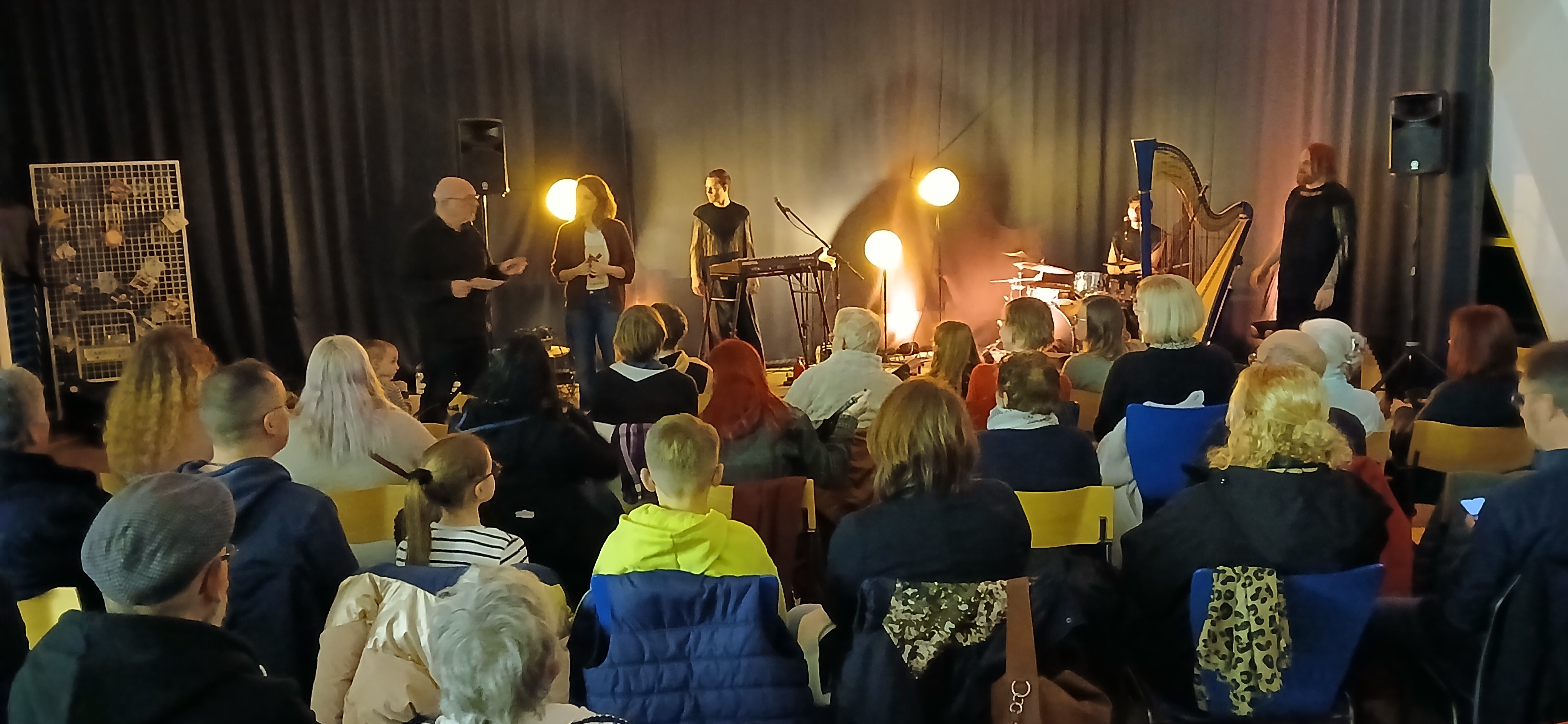 Une très belle performance du groupe Isaakians qui a investi les rayonnages de la médiathèque Louis Aragon ce vendredi 27 février 2026 ! Le groupe évolue dans un style fusionnant pop, électro, folk et ethnique. Le chanteur du groupe Maël Isaac est harpiste et cithariste lillois, ovni joyeux de la scène régionale.